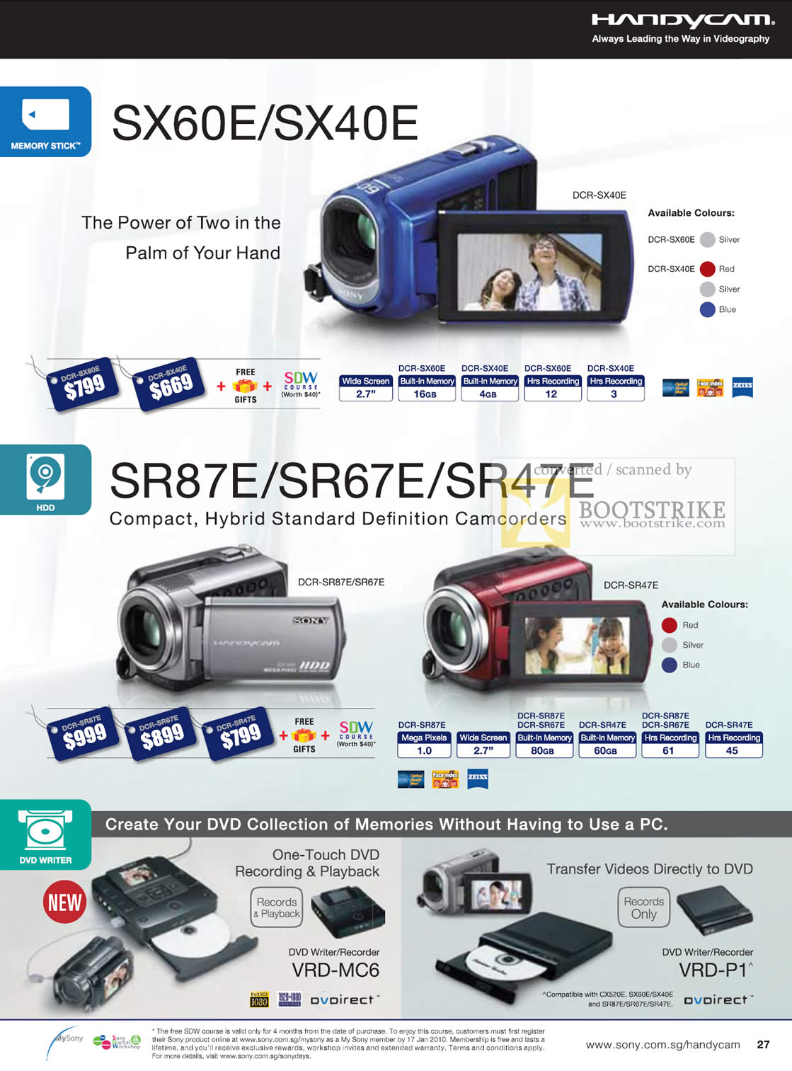 Sony Handycam Camcorder HDR SX60E SX40E SR87E SR67E SR47E VRD